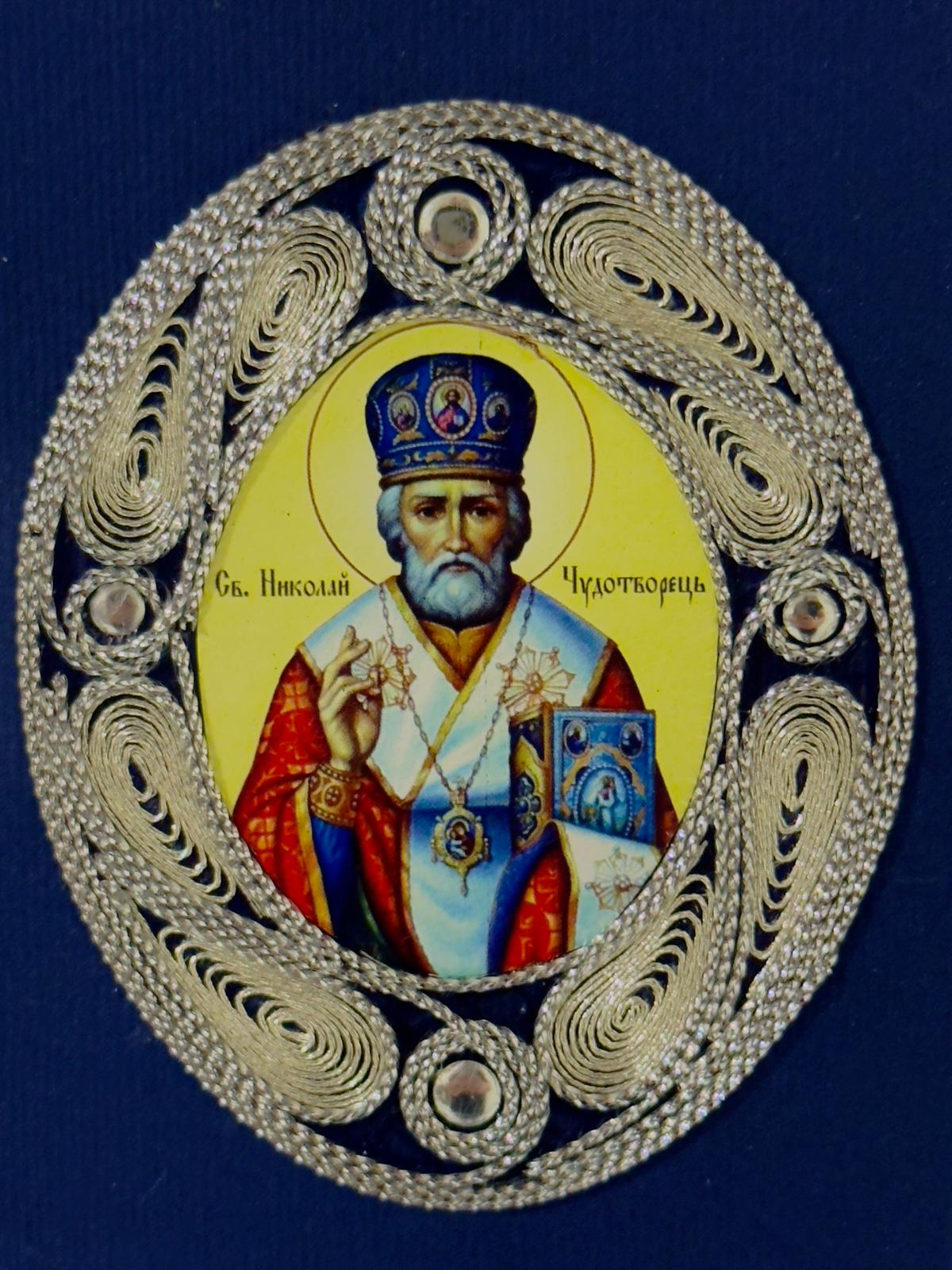 Ručni rad od srmenog konca, izrađena sa pažnjom i poštovanjem prema pravoslavnoj tradiciji. Namenjena za dom, molitveni kutak ili kao poseban poklon.